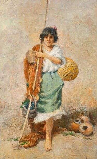Femme à la cruche Huile sur toile 62 x 39 cm