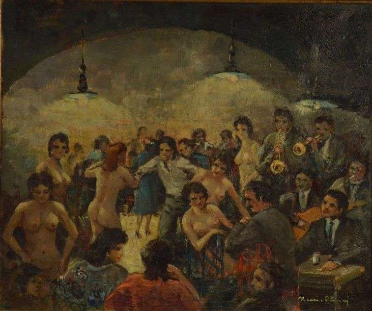 Cave à Saint-Germain des Près, Paris Huile sur toile, signée en bas à droite, titrée au dos 46 x 55 cm