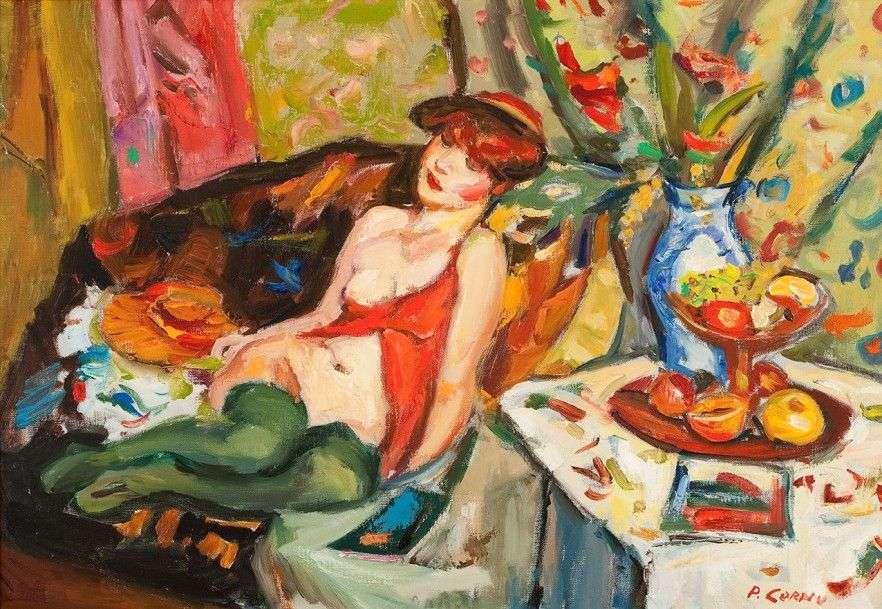 Le modèle assoupi Huile sur toile, signée en bas à droite 38,5 x 55 cm
