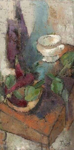 Nature morte à la soupière Huile sur toile, signée en bas à droite 120 x 60 cm