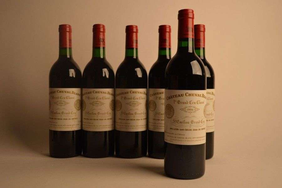 6 B CHÂTEAU CHEVAL BLANC (2 B.G| 4 e.l.s| 1 capsule légèrement gonflée avec accrocs légers) GCC1A St Emilion 1986