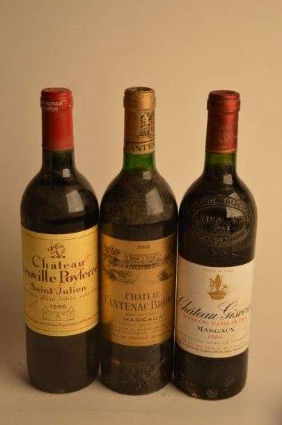 1 B CHÂTEAU GISCOURS (e.l.s.) GCC3 Margaux 1986 1 B CHÂTEAU CANTENAC BROWN (1 accroc étiquette) GCC3 Margaux 1986 1 B CHÂTEAU LEOVILLE POYFERRE (e.l.s.) GCC2 St Julien 1986