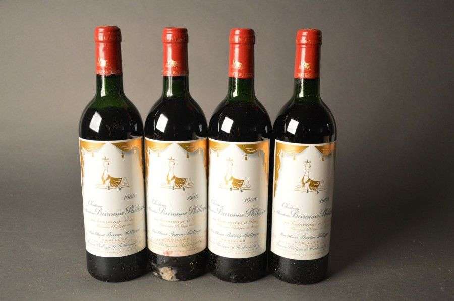 4 B CHÂTEAU MOUTON BARONNE PHILIPPE (1T.L.B| 2 H.E+| 1 M.E| 1 e.t.h| 1 bouchon légèrement descendu) GCC5 Pauillac 1988