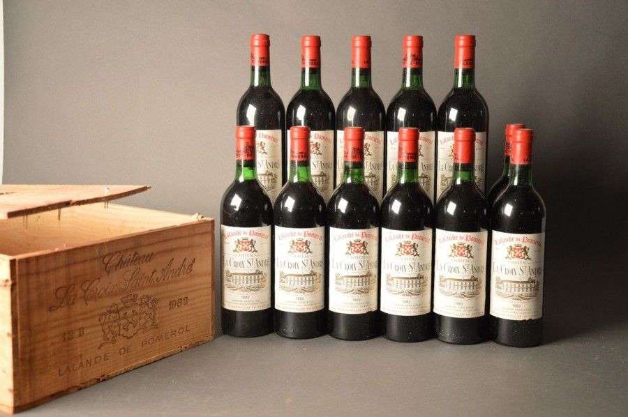 12 B CHÂTEAU LA CROIX ST ANDRE (Caisse Bois) 5 B.G| 4 T.L.B| 4 e.l.a. Lalande de Pomerol 1982