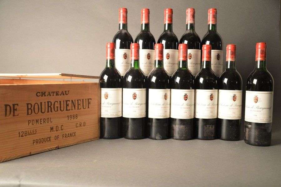 12 B CHÂTEAU DE BOURGNEUF (Caisse Bois) 5 B.G| 3 T.L.B| 4 H.E.+| c.s. Pomerol 1988
