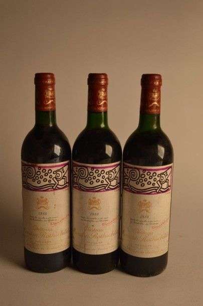 3 B CHÂTEAU MOUTON ROTHSCHILD (1 B.G| 1 H.E.+| 1 H.E| e.t. légères) GCC1 Pauillac 1988