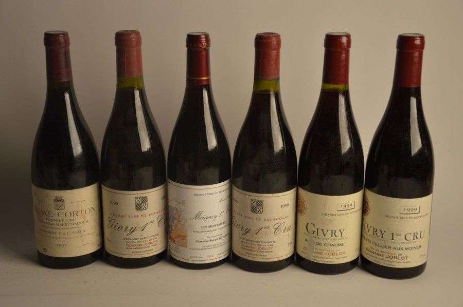 2 B GIVRY CLOS DU CELLIER AUX MOINES (1er Cru) 1 e.a. Joblot 1999 2 B GIVRY (1er Cru) e.t. légère Joblot 1990 1 B MERCUREY LES MONTAIGUS (1er Cru) Size & Fils 1998 1 B ALOXE CORTON CLOS DES MARECHAUDES (1er Cru) e.t. légère Saier 1992
