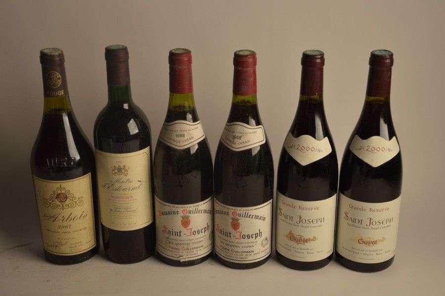 2 B SAINT JOSEPH Rouge Guyot 2000 2 B SAINT JOSEPH LES GRANDES VIGNES Rouge (1 e.l.s| 1 e.l.a.) Guillermain 1988 1 B ARBOIS Rouge (e.l.s.) Jacques Tissot 1987 1 B BORDEAUX (B.G| e.l.a.) Maitre d'Estournel 1986