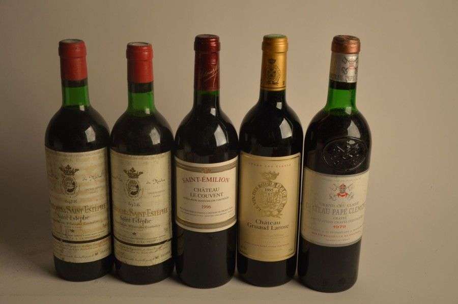 1 B CHÂTEAU GRUAUD LAROSE GCC2 St Julien 1995 1 B CHÂTEAU PAPE CLEMENT (T.L.B.-| e.t. légère) CC Graves 1979 2 B MARQUIS DE SAINT ESTEPHE (1 B.G| 1 T.L.B| e.f.s.) Saint Estephe 1978 1 B CHÂTEAU LE COUVENT Saint Emilion 1996