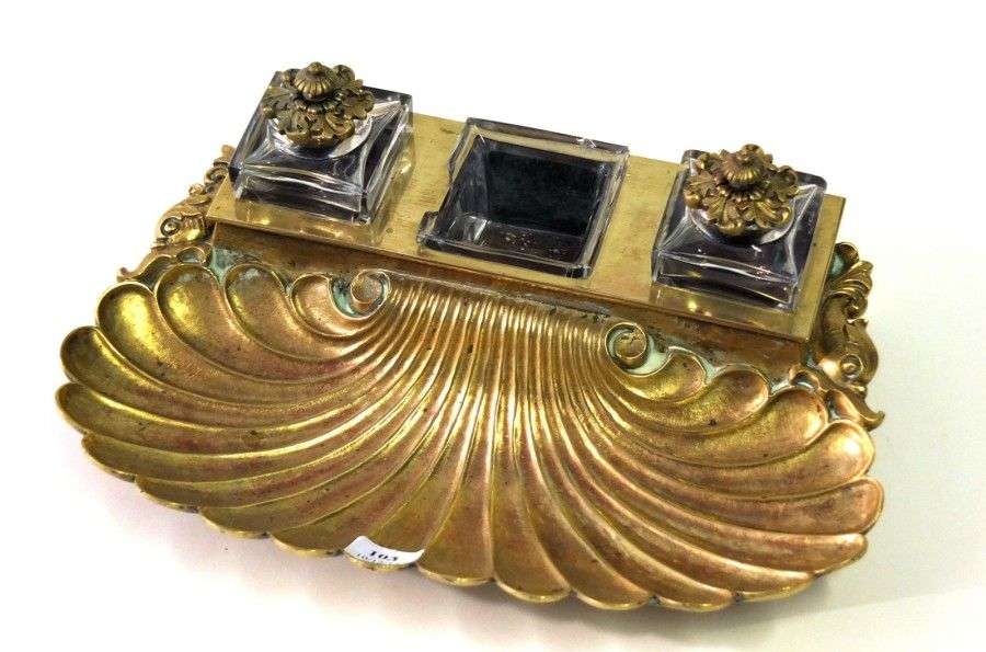 Encrier en bronze doré à décor de coquille avec ses verreries Epoque Napol