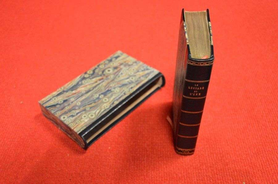 [LITTERATURE - CURIOSA] - LUCIUS. La Luciade ou l'Ane de Patras, avec le texte grec revu sur plusieurs manuscrits. Paris, Bobée, 1818| in-12, demi-maroquin bleu à coins, dos lisse, filets dorés, titre et auteur dorés, tête dorés, étui ( Lavaux relieur).