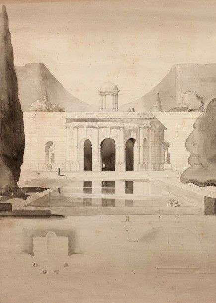 Projet architectural avec une rotonde et une pièce d'eau dans un parc
