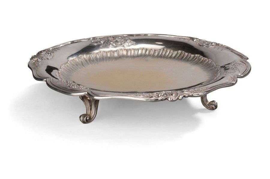 Présentoir à gateaux en argent, à décor de filets contours et acanthes.