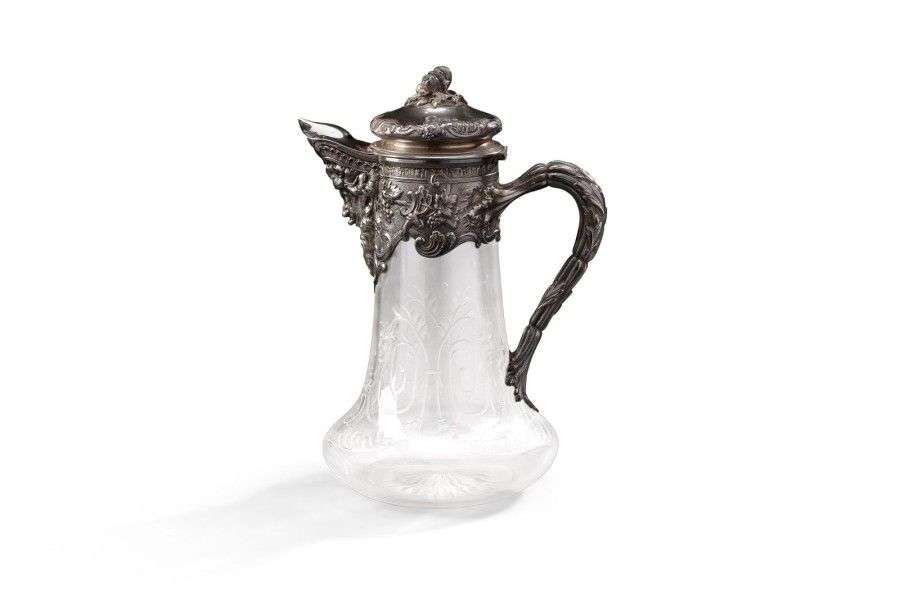 Le bec à décor d'un mascaron d'homme barbu. Anse feuillagée et prise en forme de grenades éclatées.