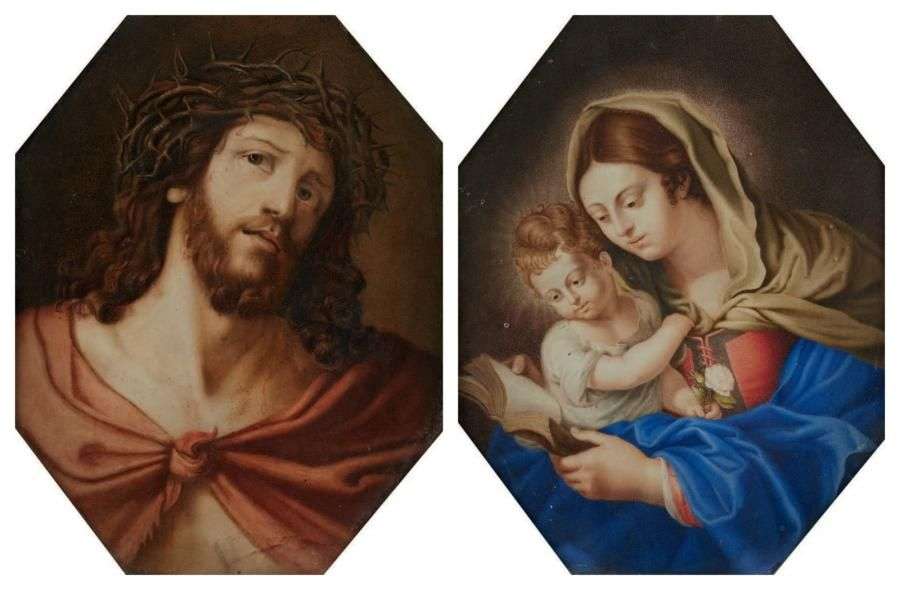 Deux aquarelles de forme octogonale.