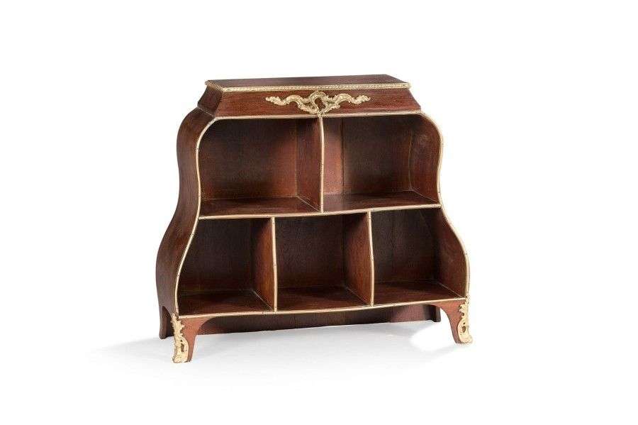 Cartonnier en placage de bois de violette présentant cinq casiers.