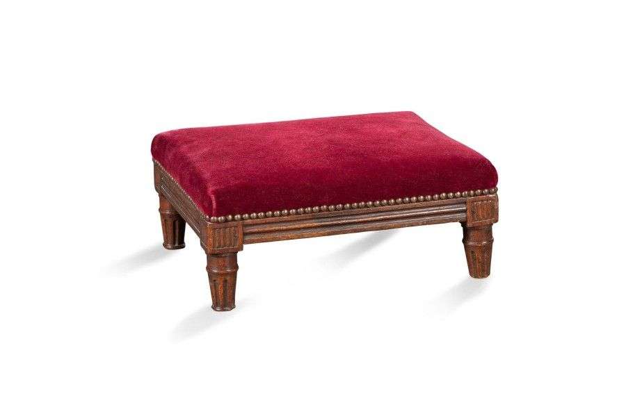 Tabouret de pied en noyer mouluré| dés à grattoirs| pieds fuselés à cannel
