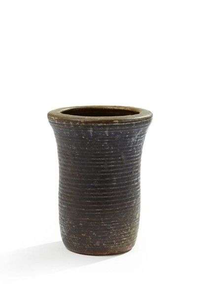 Petit vase rouleau à col légèrement évasé Signé sous la base "Beyer 35" H: 15,5 cm