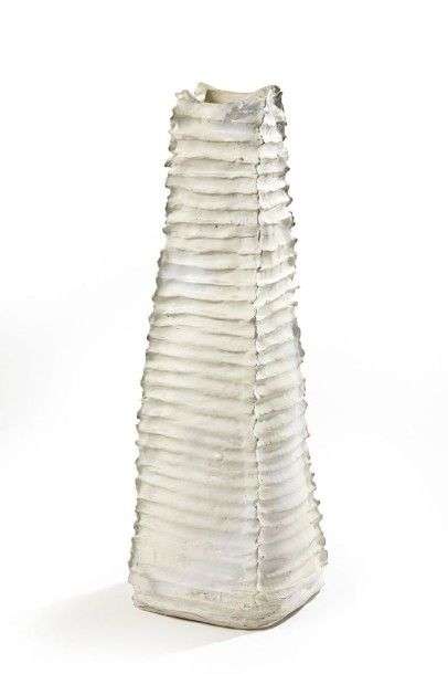 Imposant vase "zigouratte" en grès émaillé blanc Signé 2014 H: 60 cm