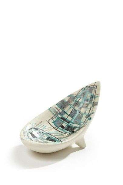Coupe sur pied de forme libre à rare décor abstrait Signé circa 1960 H: 10 cm L: 19,5 cm