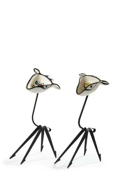 Petite chèvre, la tête en faïence sur pied en métal laqué noir circa 1960 H: 50 cm