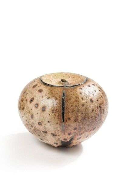 Vase a col rétracté, émail moucheté Signé sous la base H: 14 cm