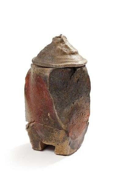 Pot couvert en grès cuisson bois Signé sous la base 2012 H totale: 27 cm