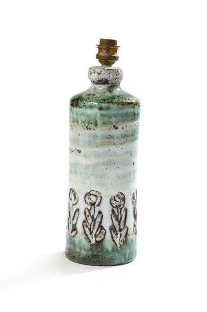 Pied de lampe en céramique émaillée vert circa 1975 H: 31 cm (avec douille)