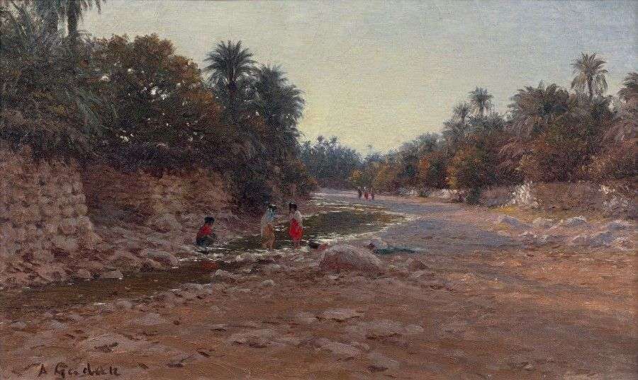 Born in the French area of Seurre in 1854, Antoine Gadan's talent was revealed in Algiers where he moved at the age of 27 years. An Orientalist and above all a landscape painter, his interest quite naturally fell upon studying Algerian landscapes, of which he created delicate, personal depictions. His light stroke and innovative range of colors together gave rise to a very personal style. Antoine Gadan participated in the Universal