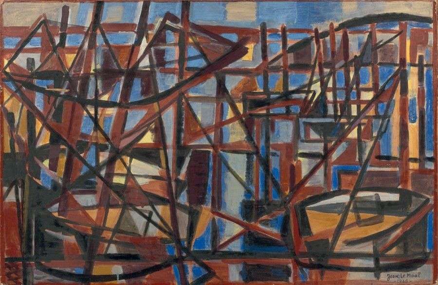 Bateaux au port, 1946, peinture à l'oeuf sur papier marouflé, 49 x 60,5 cm (collection particulière, Suisse| présentée à l'exposition 1946,