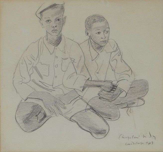 Crayon sur papier, signé en bas à droite, situé Guadeloupe et daté 1939