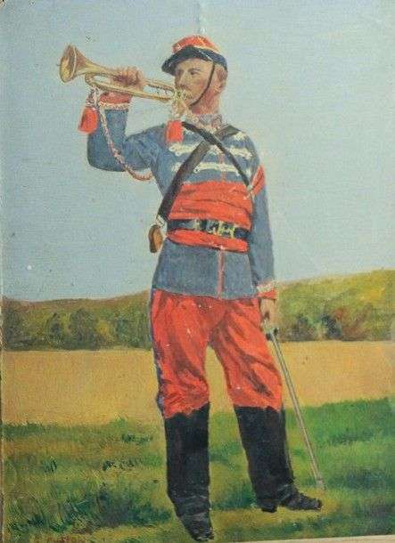 Lot de 2 huiles, sur carton: Trompette de Cavalerie Légère, signée en bas