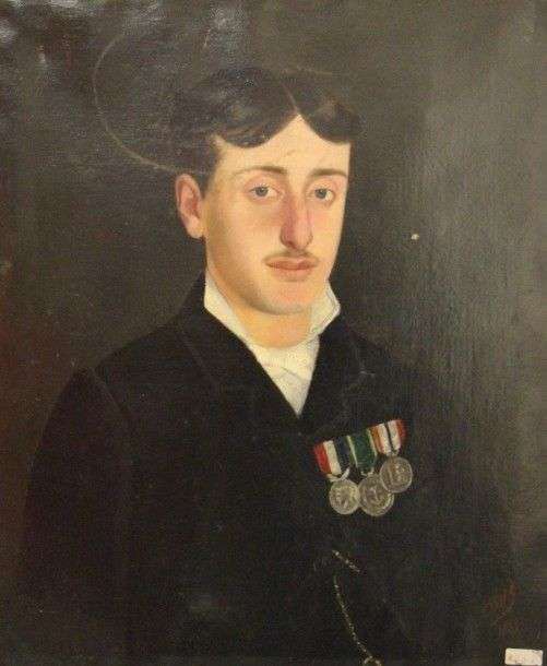 Huile sur toile, signée en bas à droite et datée 1883. 65 x 54 cm (rentoilé, fortes restaurations)