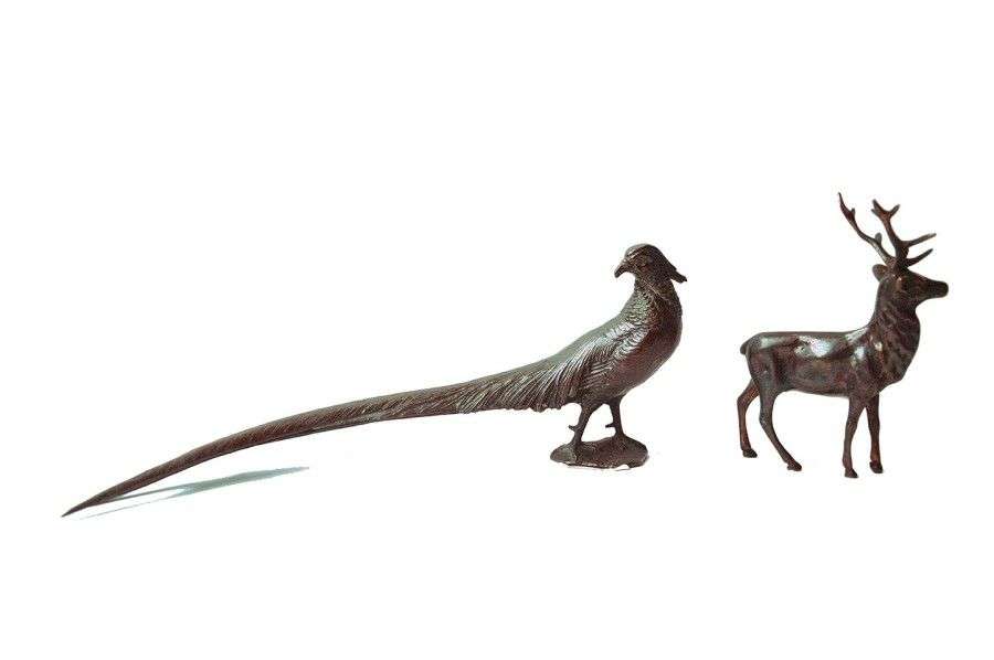 Lot de 2 bronzes: faisan chinois| cerf. BE