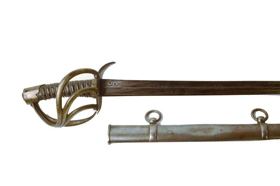 Sabre de Cuirassier, modèle An XIII. Poignée recouverte de basane, avec fi
