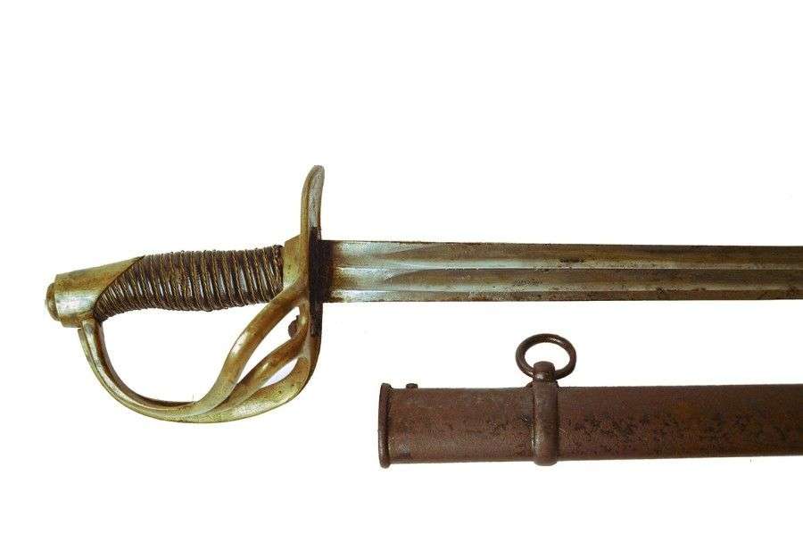 Sabre de grosse Cavalerie étrangère. Poignée recouverte de basane, avec filigrane.