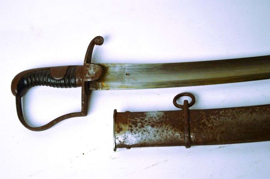 Garde à une branche, à la Blücher. Lame courbe, à dos plat et pans creux.