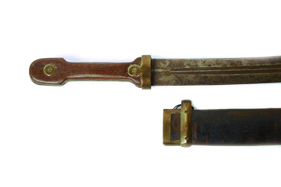 Fourreau recouvert de cuir, à deux garnitures en laiton. EM (piqûres)