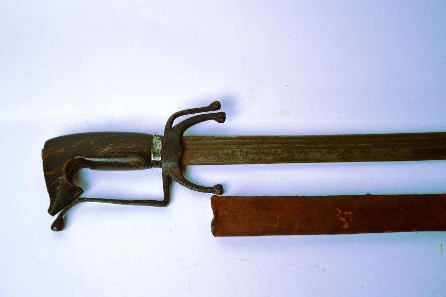 Monture en fer. Garde à une branche et trois antennes. Lame courbe.