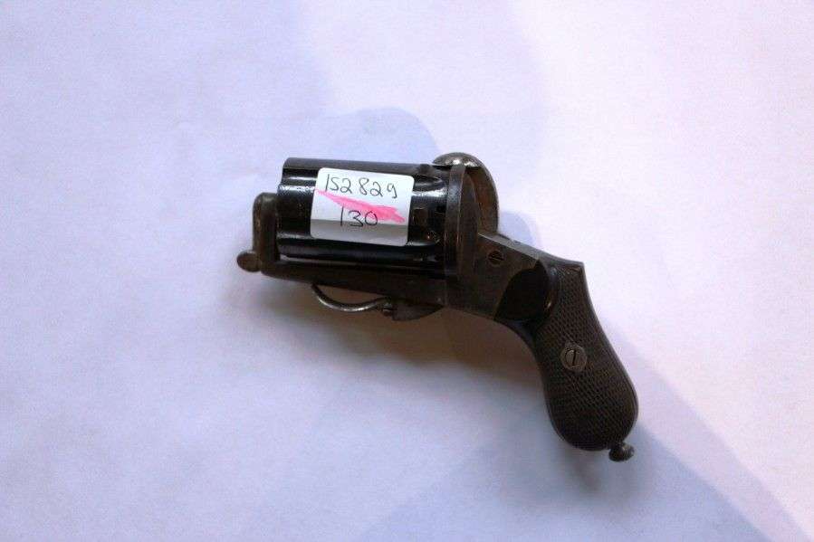 Revolver poivrière, à broches. 6 coups, calibre 9 mm. Barillet évidé, bron