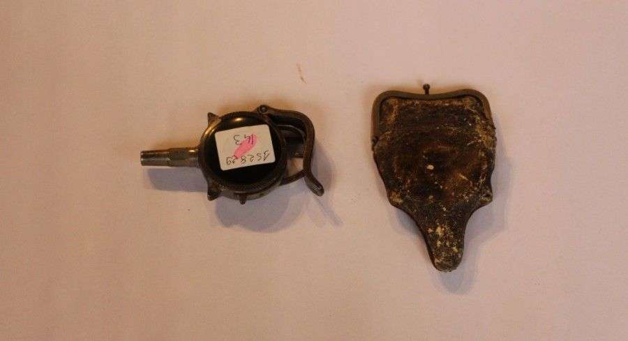 Revolver Le Protector, système Turbiaux. 10/coups, calibre.22''. Barillet plat. Avec étui porte-monnaie en peau (usures, accidents). ABE