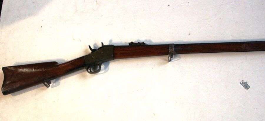 Fusil système Rolling Block. Calibre.44'' (env.) Canon rond, avec bissectrice de baïonnette et hausse rabattable.
