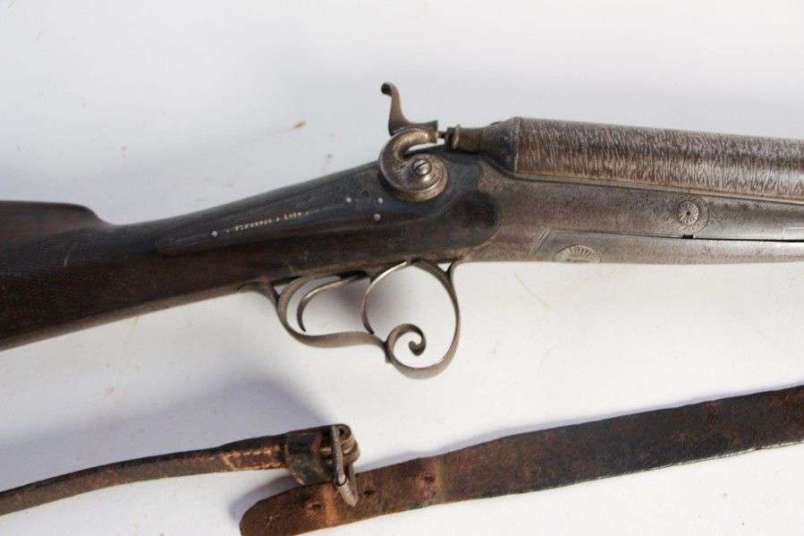 Fusil, à percussion centrale, chiens extérieurs, vendu par Revaud-Drevon,