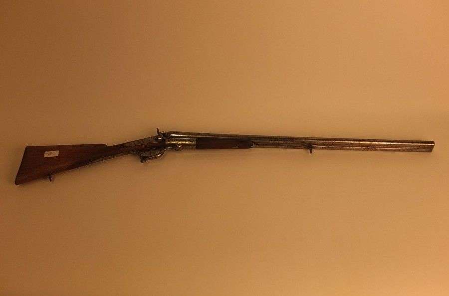 Fusil de chasse, à percussion centrale, chiens extérieurs. 2 coups, calibr