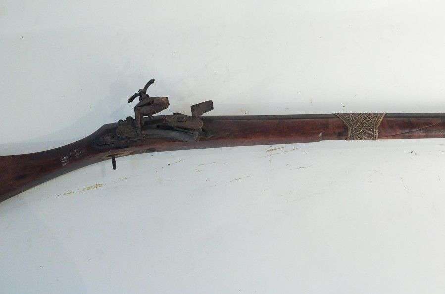 Fusil Marocain, à silex dit Moukalah. Canon à pans, niellé. Platine à la m