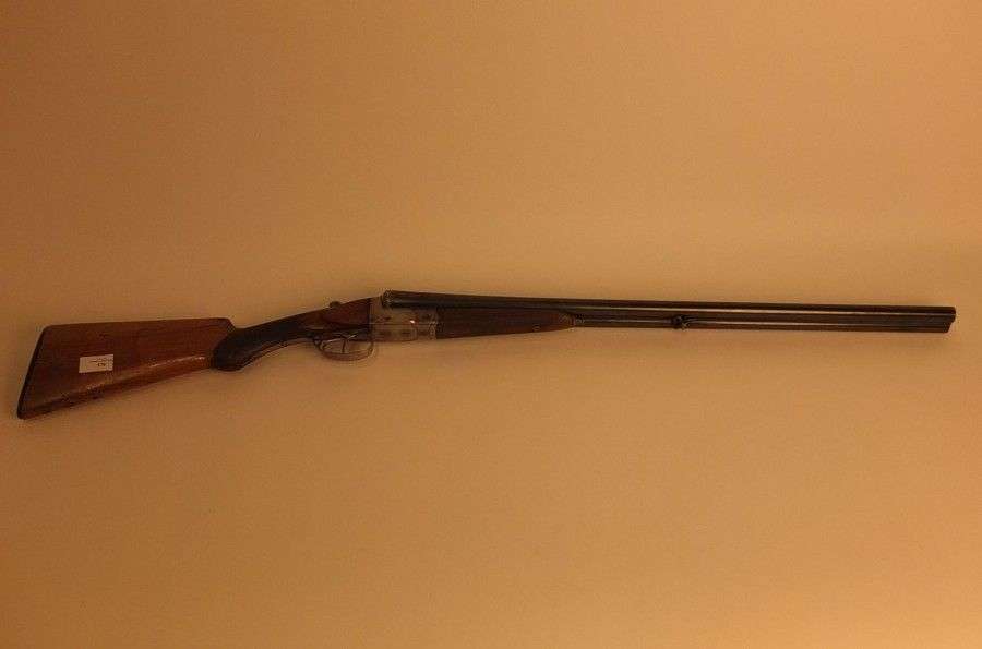Fusil stéphanois. 2 coups, calibre 12/65, extracteur. Canons juxtaposés de 70 cm. Crosse demi-pistolet, en noyer, de 36,5 cm, en partie quadrillé. (DANS L'ÉTAT) Catégorie D 1 soumise à enregistrement. L'acquéreur devra présenter OBLIGATOIREMENT la carte d'identité et le permis de chasser en cours de validité (2015/2016) ou licence de tir en cours de validité
