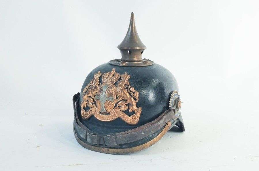 Casque à pointe de Réserviste bavarois, modèle 1895. Bombe, visière et cou