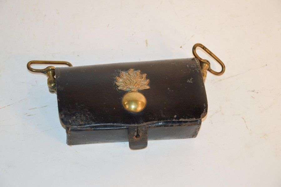 Coffret de giberne, en cuir. Motif à la grenade en laiton. ABE Fabrication