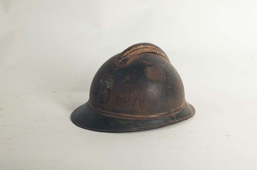 Casque d'Infanterie, modèle 1915, dit Adrian, peint en bleu. Coiffe intérieure en cuir. ABE