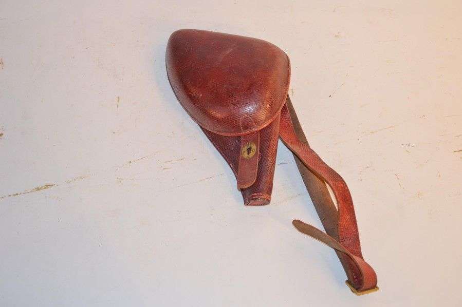 Étui-jambon de Spahis, modèle 1892, en cuir rouge, matriculé dans le couve